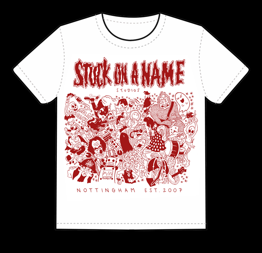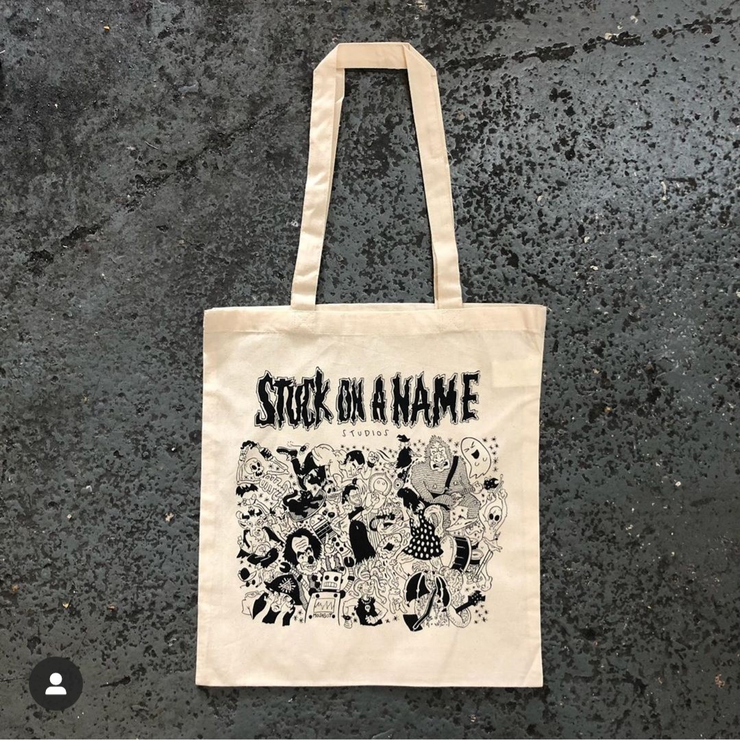 Tote and shirt design for Nottingham based studio/venue, 'Stuck on a Name'.