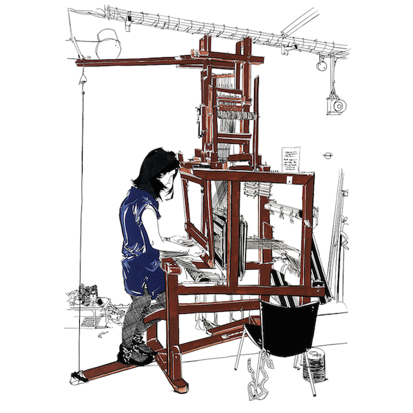 A loom machine in the 'Weave Room' of the Bonington building, NTU.