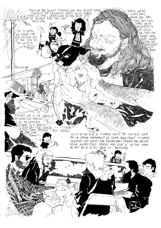 In the summer of 2010, I flew to the USA to do a spot of sight-seeing spanning from Louisiana, over to the west-coast and back again on tour. It was a nice time. This zine is an illustrated document of my travels.