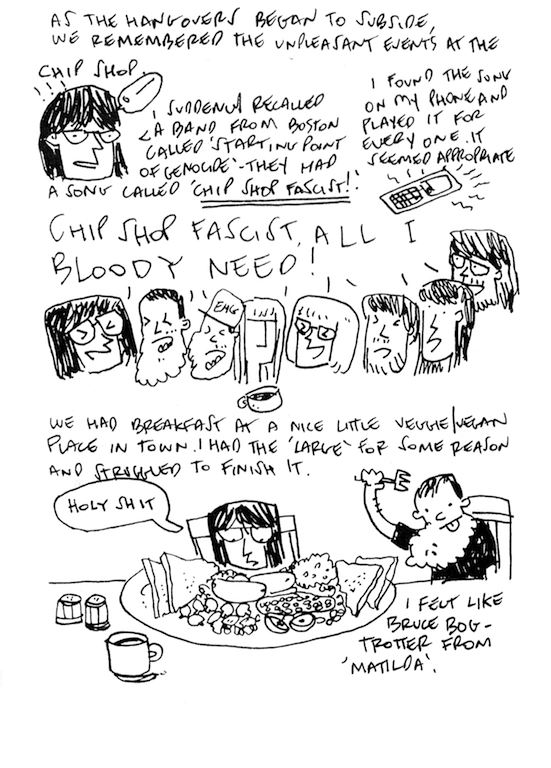 A short comic depicting the four gigs that bands Moloch and Snob shared late Jan/Feb '15.